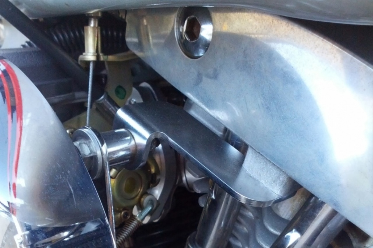 CVキャブレターやHSRキャブレターをショベルに取り付けるためにエボ用のサポートブラケットを使用しますが、そのサポートブラケットとロッカーカバーをしっかりマウントするのに必要なステー(ブラケット)です。