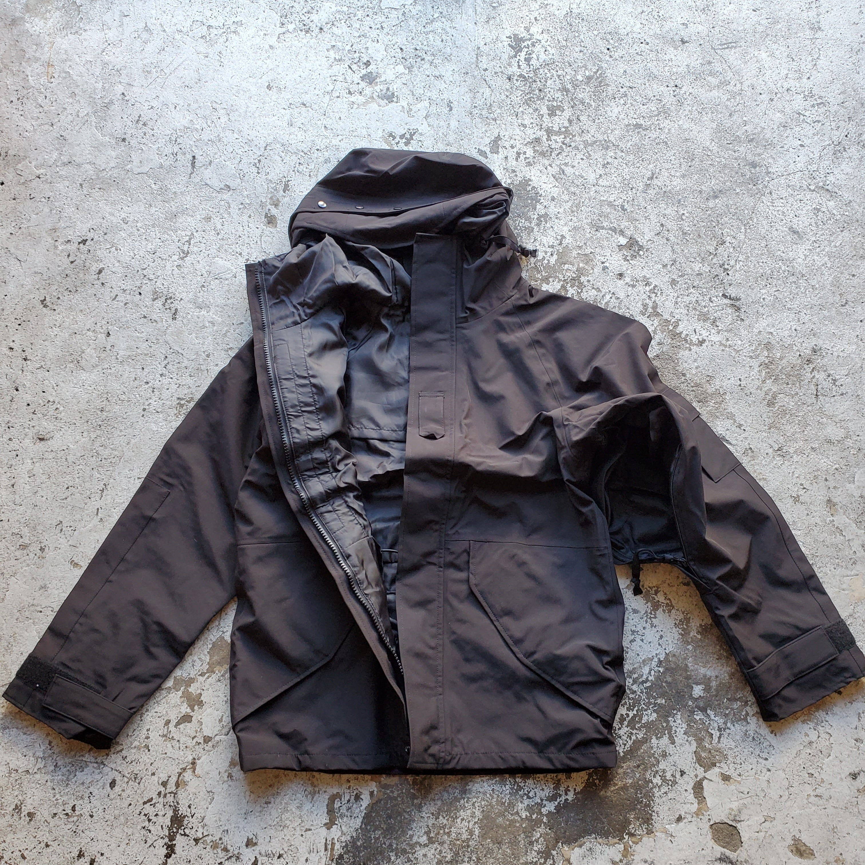 ECWCS (EXTENDED COLD WEATHER CLOTHING SYSTEM)の略で拡張式寒冷地被服システムの意味です。軍モノ好きの方はご存知かと思いますが、ECWCSはパーカーの他に化繊のインナーウエアー/ライナーをセットすることで、それまでのM65パーカーのような防寒性のみを追求したタイプから組み合わせにより様々な気候に対応できる画期的な被服システムになります。